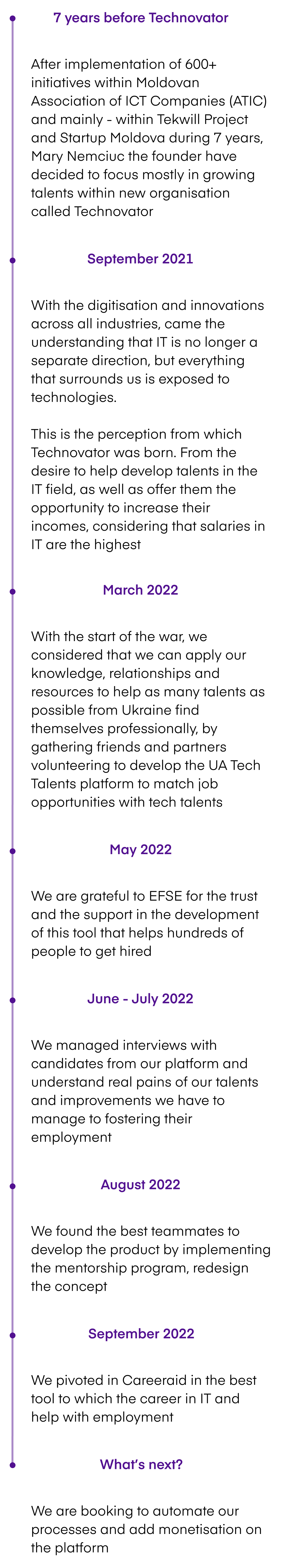 CareerAid is a platform that offers Ukrainian professionals all the tools for switching easier to a new career, offers the mentorship from a team of experts in the chosen domain, and shares insights on how to develop the skills needed to succeed.